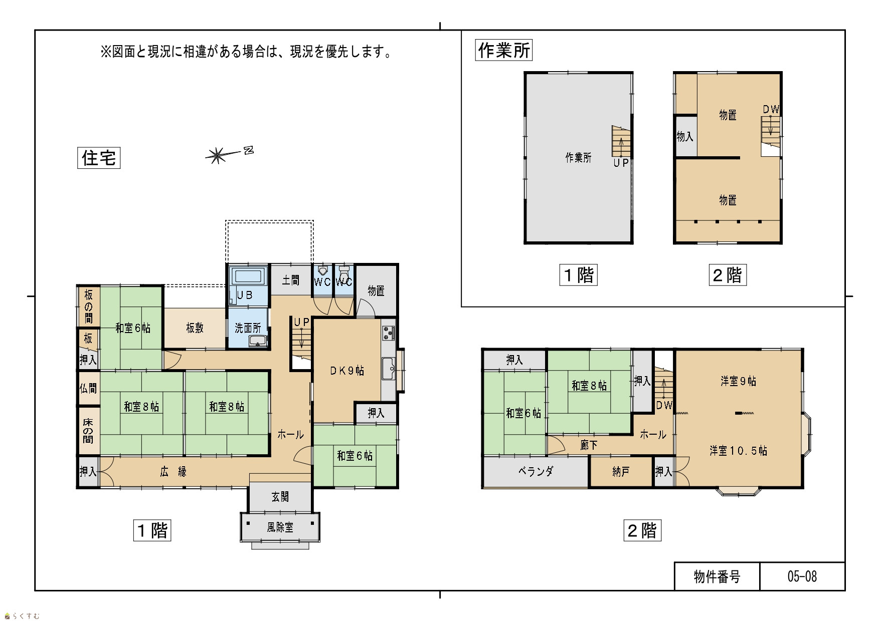 8DK (和室:6畳、6畳、6畳、8畳、8畳、8畳) (洋室:9、10.5) DK9 |