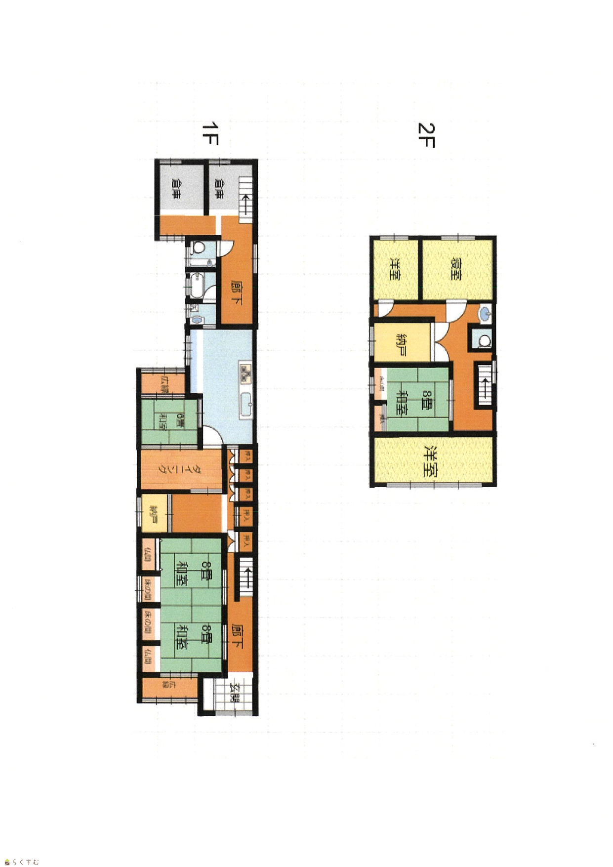 | 間取り | 8DK (和室:8畳、8畳、6畳、8畳、8畳) (洋室:7、8、6) | ||