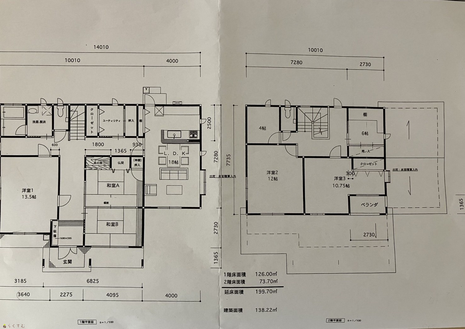 | 建物面積 | 1階 126㎡/ 2階 73.73㎡/ 計 199.73㎡ /60.41坪 | ||