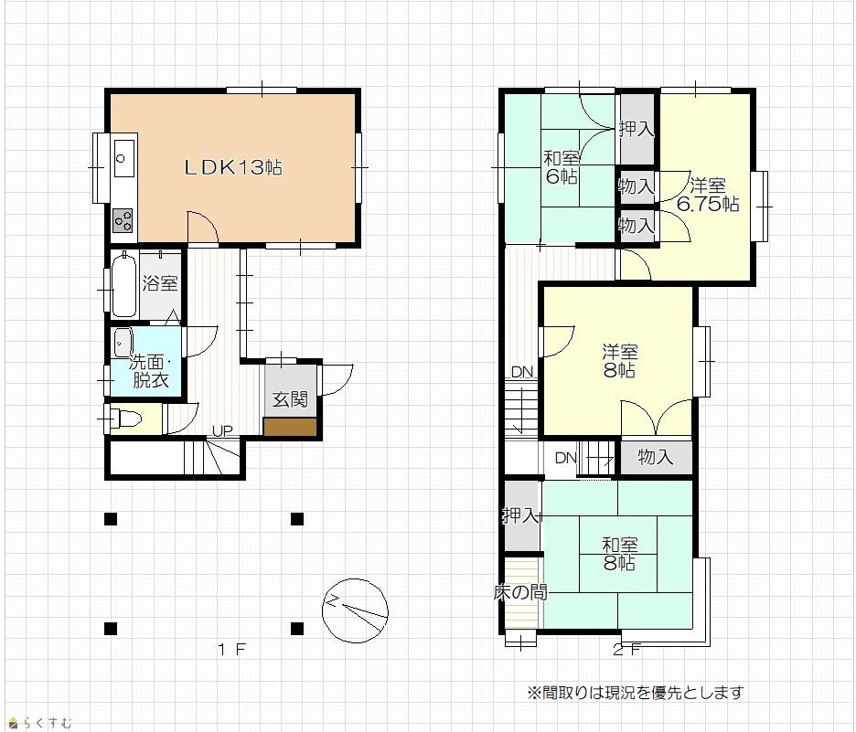 4LDK (和室:8畳、6畳) (洋室:8、6.7) LDK13 |