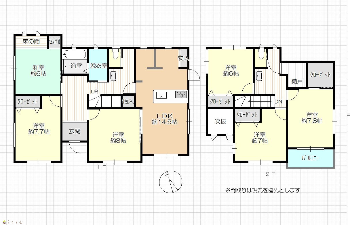6LDK (和室:6畳) (洋室:8、7.7、7.8、7、6) LDK14.5 |
