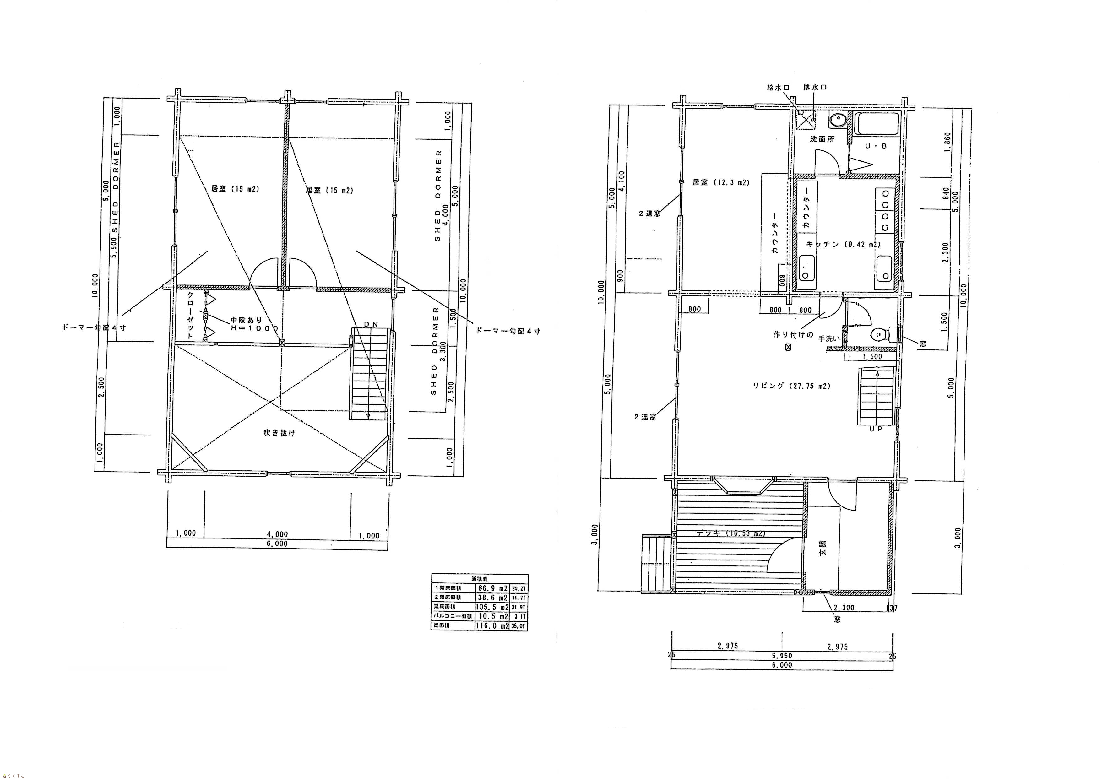 | 建物面積 | 1階 66.9㎡/ 2階 38.6㎡/ 計 105.5㎡ /31.91坪 | ||