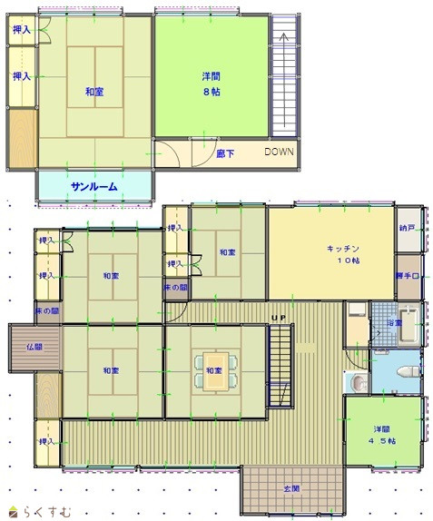 6DK (和室:8畳、8畳、8畳、6畳、10畳) (洋室:8) DK 10帖 2階建倉庫 2棟つき |