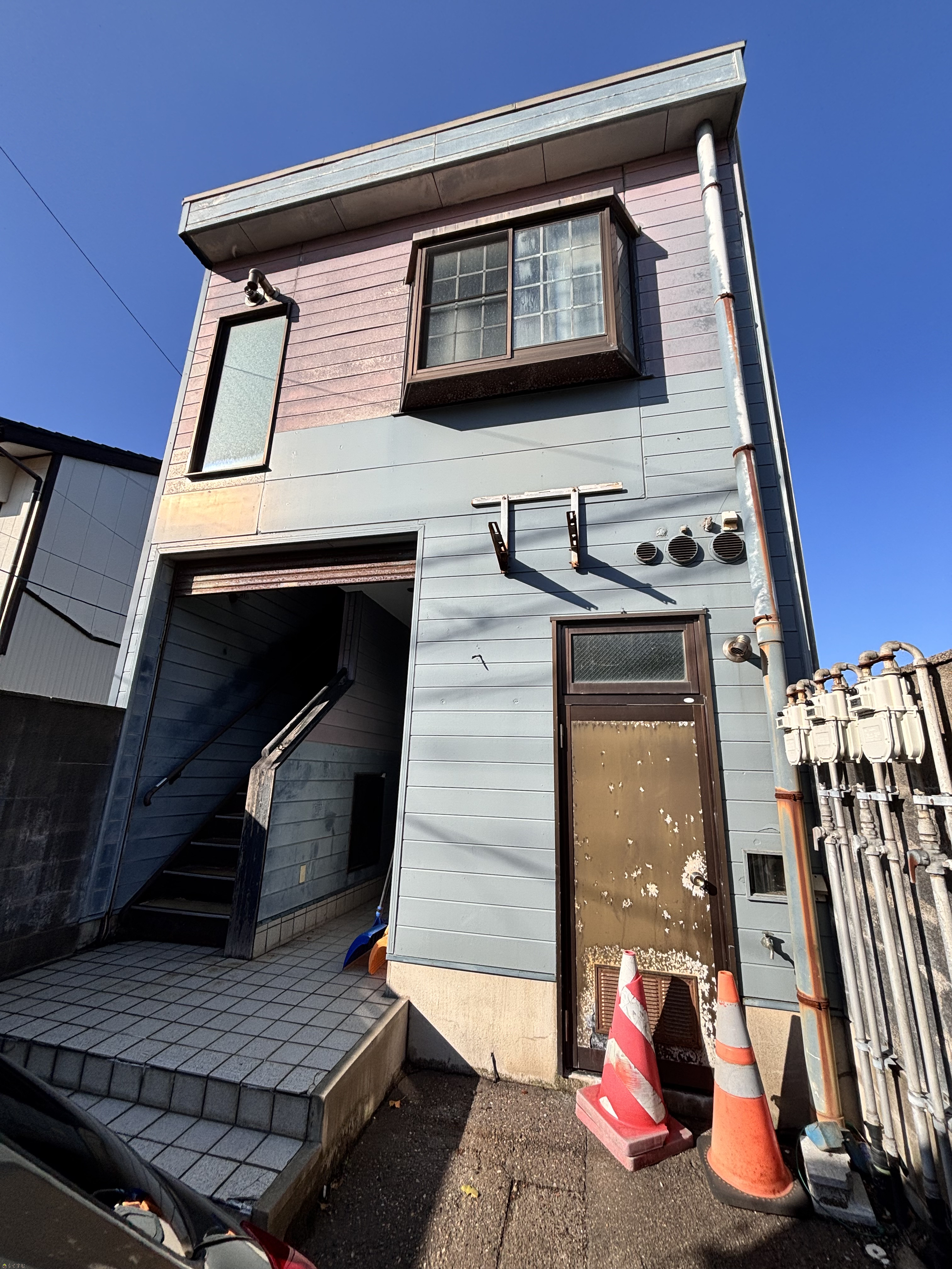 | 備考 | ・現在、2Fアパート満室のため写真ほか詳細なし/間取り・賃料詳細(1LDK 30,000円、2LDK 50,000円) ・1F店舗の残物処分、クリーニングして引渡します。 ・下水道受益者負担金完納済 ・1F 店舗のみ空室になっており、2Fは2室分の賃料合計8万円の収益が見込まれます。 |