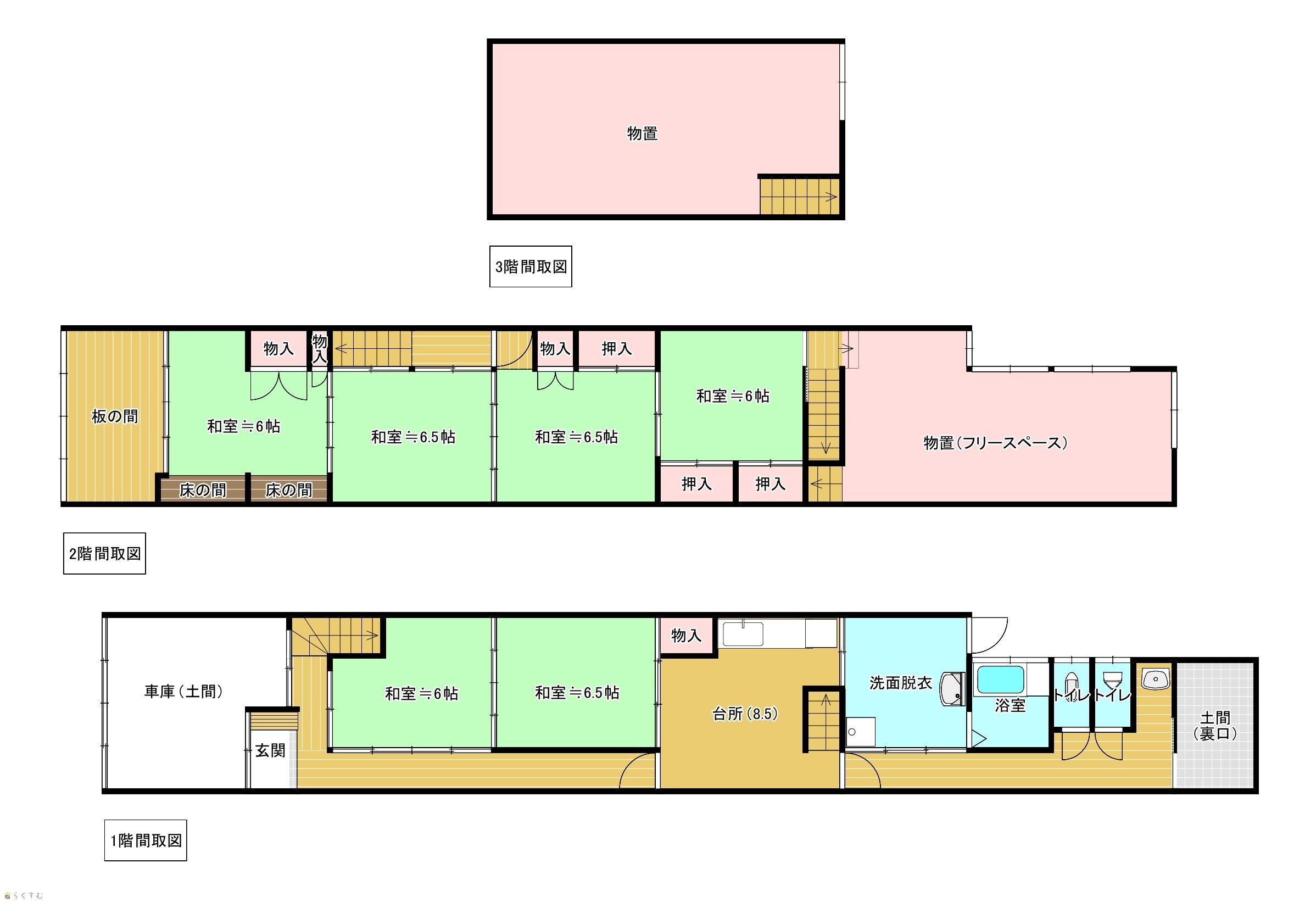 6DK (和室:6畳、6畳、6畳、6.5畳、6.5畳、6.5畳) DK8.5 |