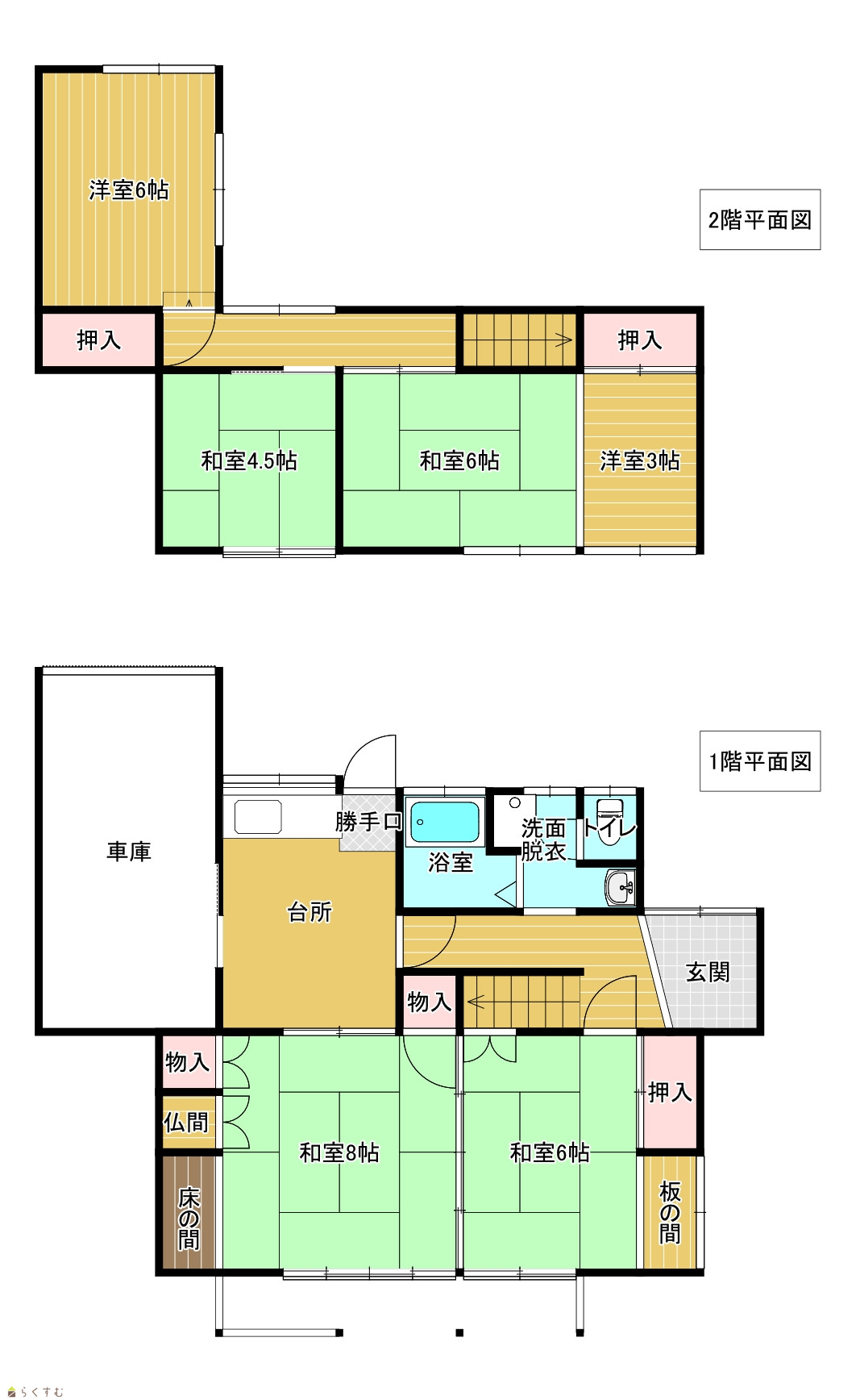 6DK (和室:8畳、6畳、6畳、4.5畳) (洋室:6、3) DK6 |