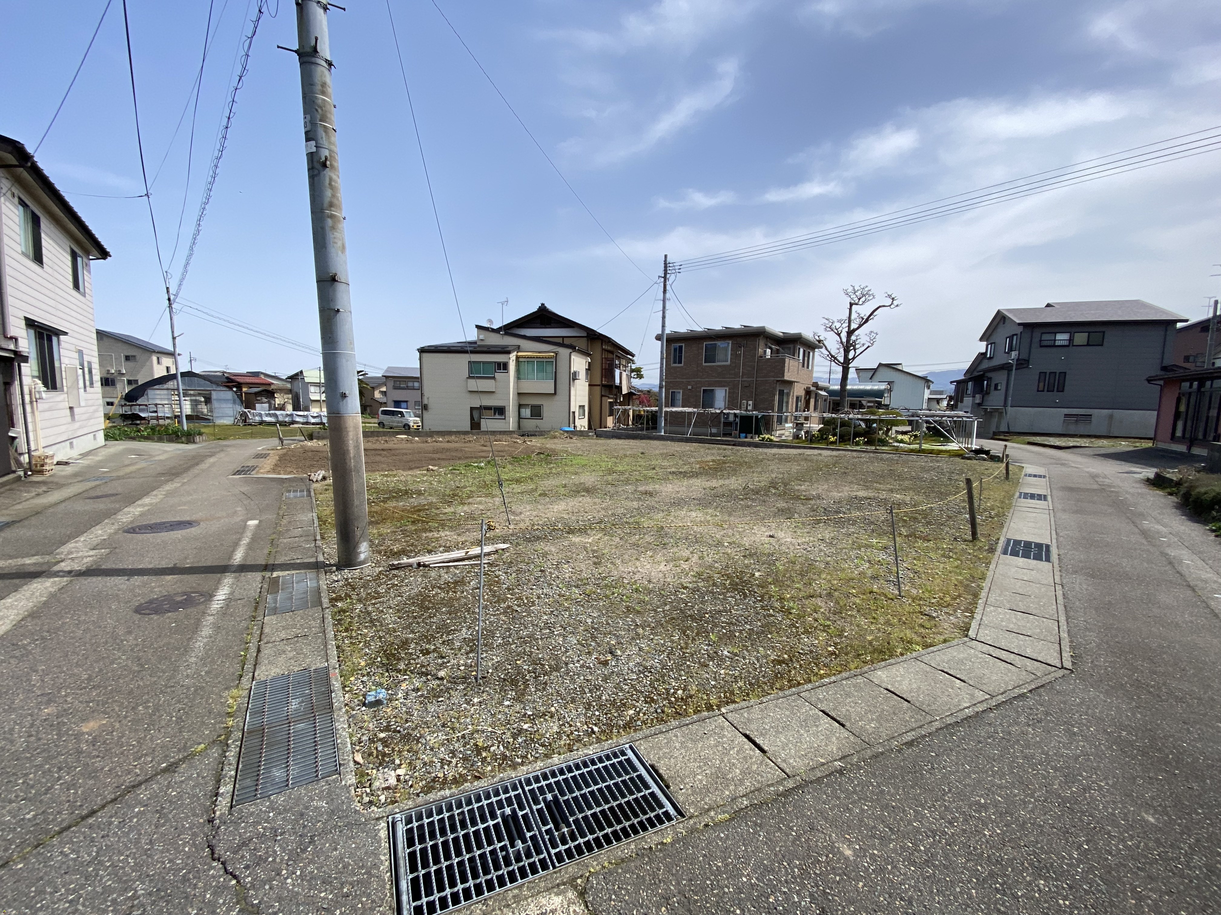 設備 角地、南側道路面す、更地、学校近く、閑静な住宅街、建築条件なし、所有権、側溝、電気、都市ガス(宅地内)、上水道(宅地内)、下水道(宅地内)、前面道路融雪設備あり、住宅向け、田舎暮らし