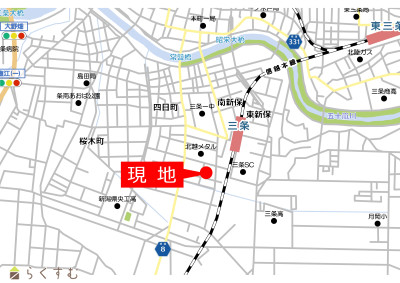 JR「三条」駅徒歩7分、土地約75坪の整形地!スーパー・ドラッグストア近く、毎日のお買物に便利です