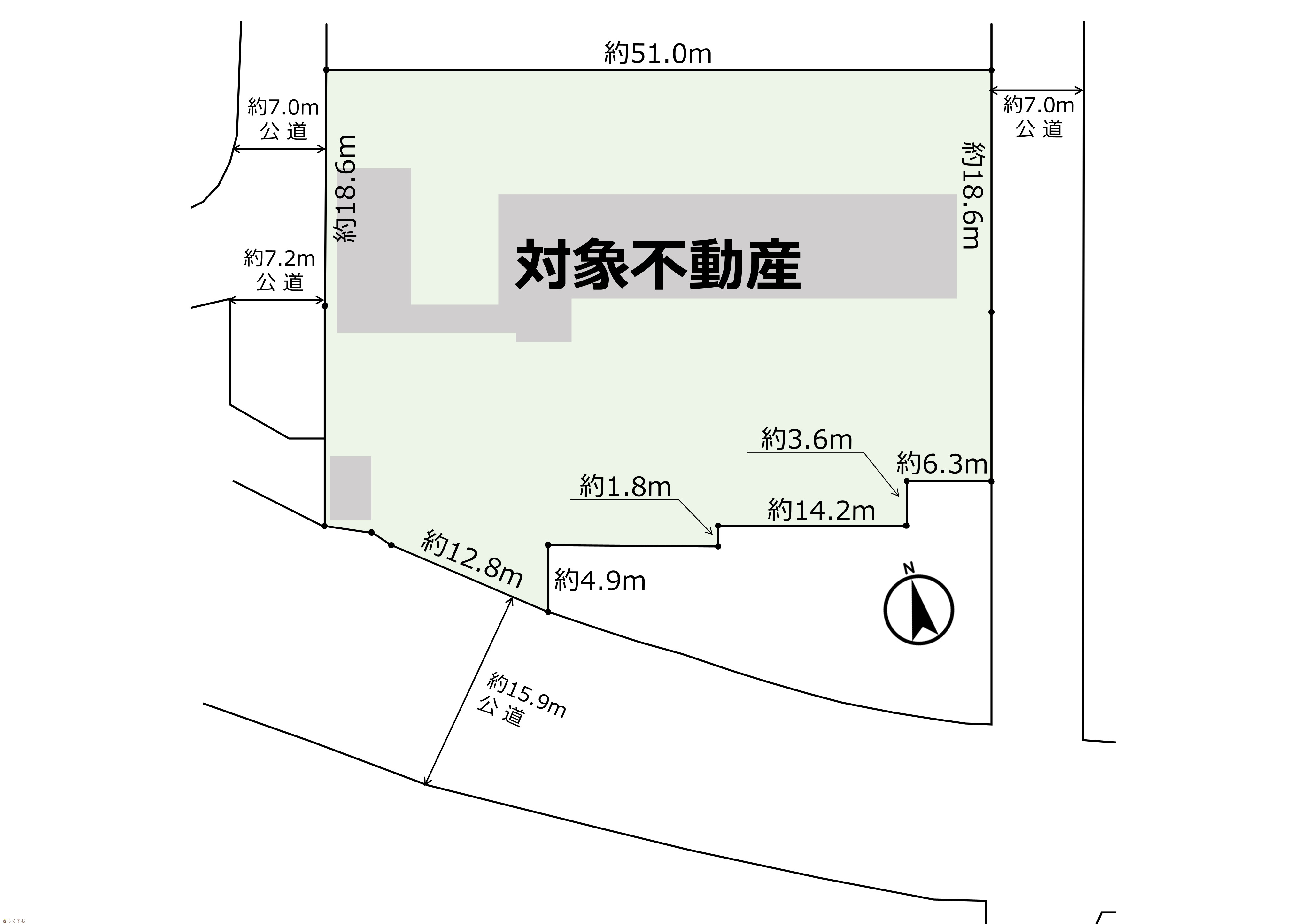形状 - 道路 西側約7.0m公道、東側約7.0m公道、南側約15.9m公道
