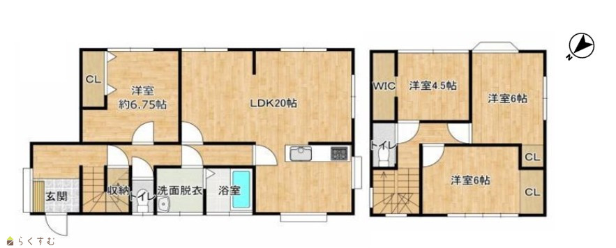 4LDK (和室:6畳) (洋室:6.7、6、6、4.5) LDK20 |