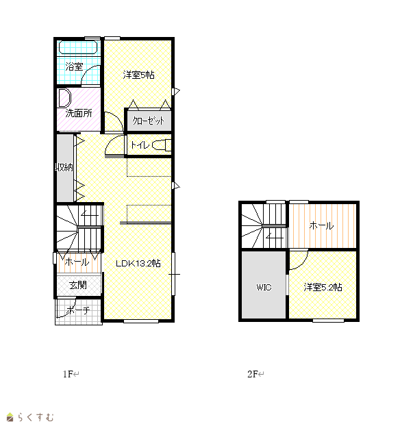 2LDK (洋室:5.2、5) LDK13.2 |