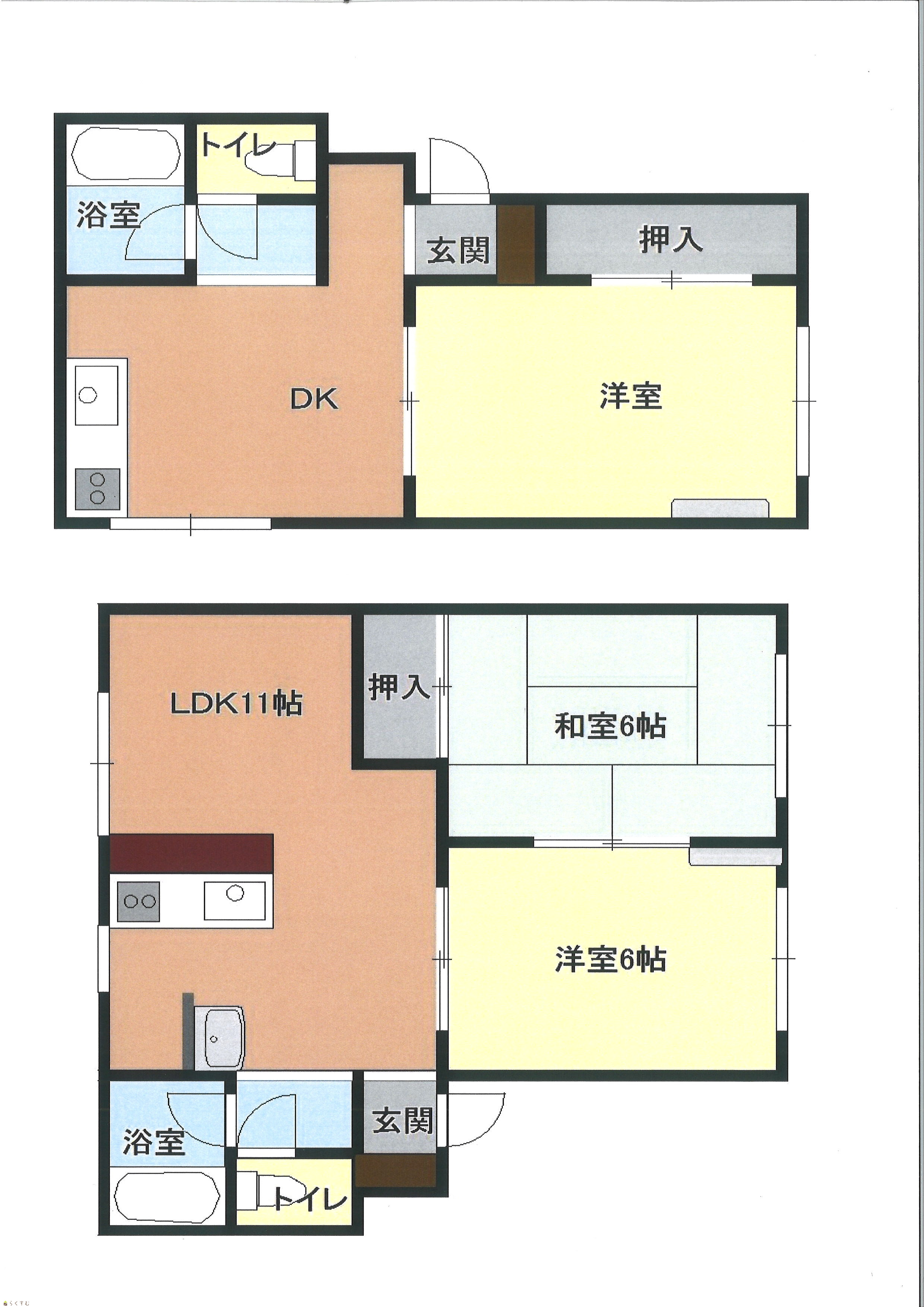 | 間取り | 1階テナント、1DK2部屋、2DK2部屋 | ||
