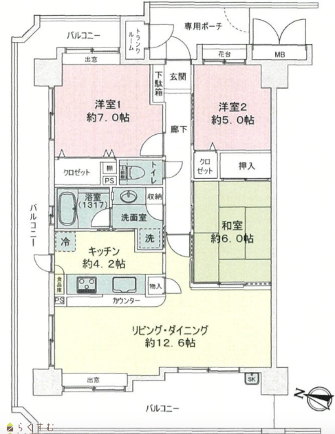 3LDK (和室:6.0畳) (洋室:7.0、5.0) 16.8 |