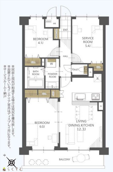 2LDK (洋室:6、4.1) LDK12.3 サービスルーム(納戸)5.4帖 |
