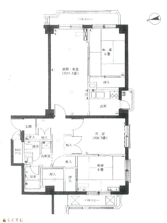 3LDK (和室:6畳、6畳) (洋室:6.3) LD11.5 |