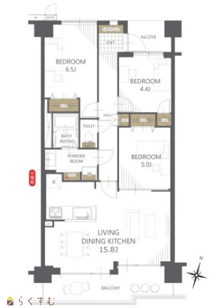 間取り 3LDK (洋室:6.5、5、4.4)
