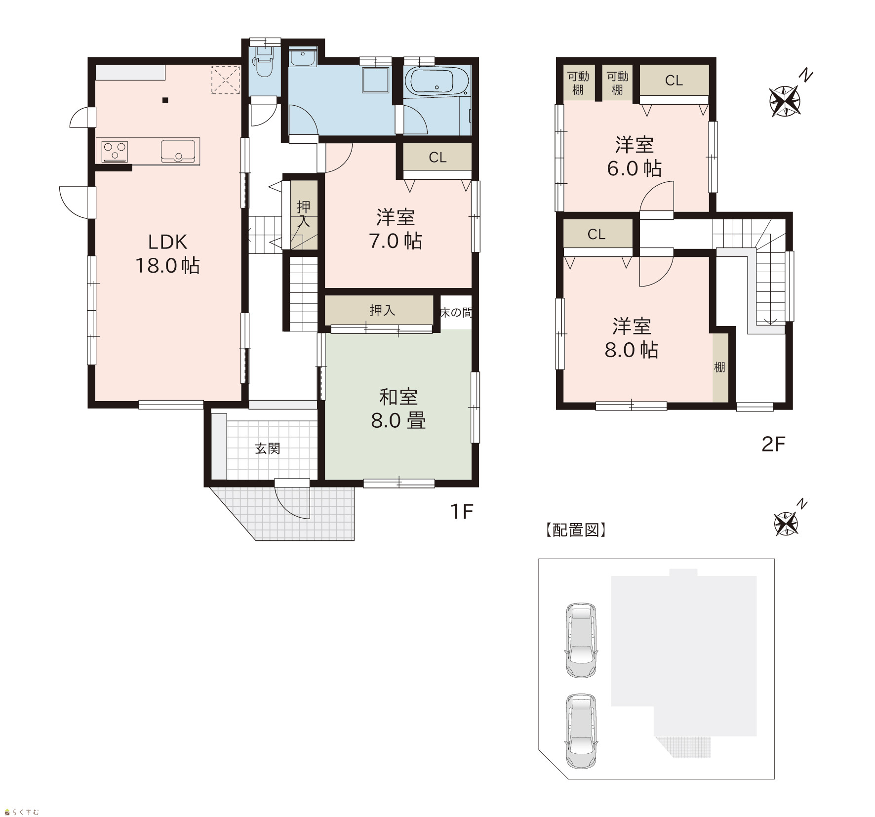 4LDK (和室:8.0畳) (洋室:8.0、7.0、6.0) LDK18.0 |