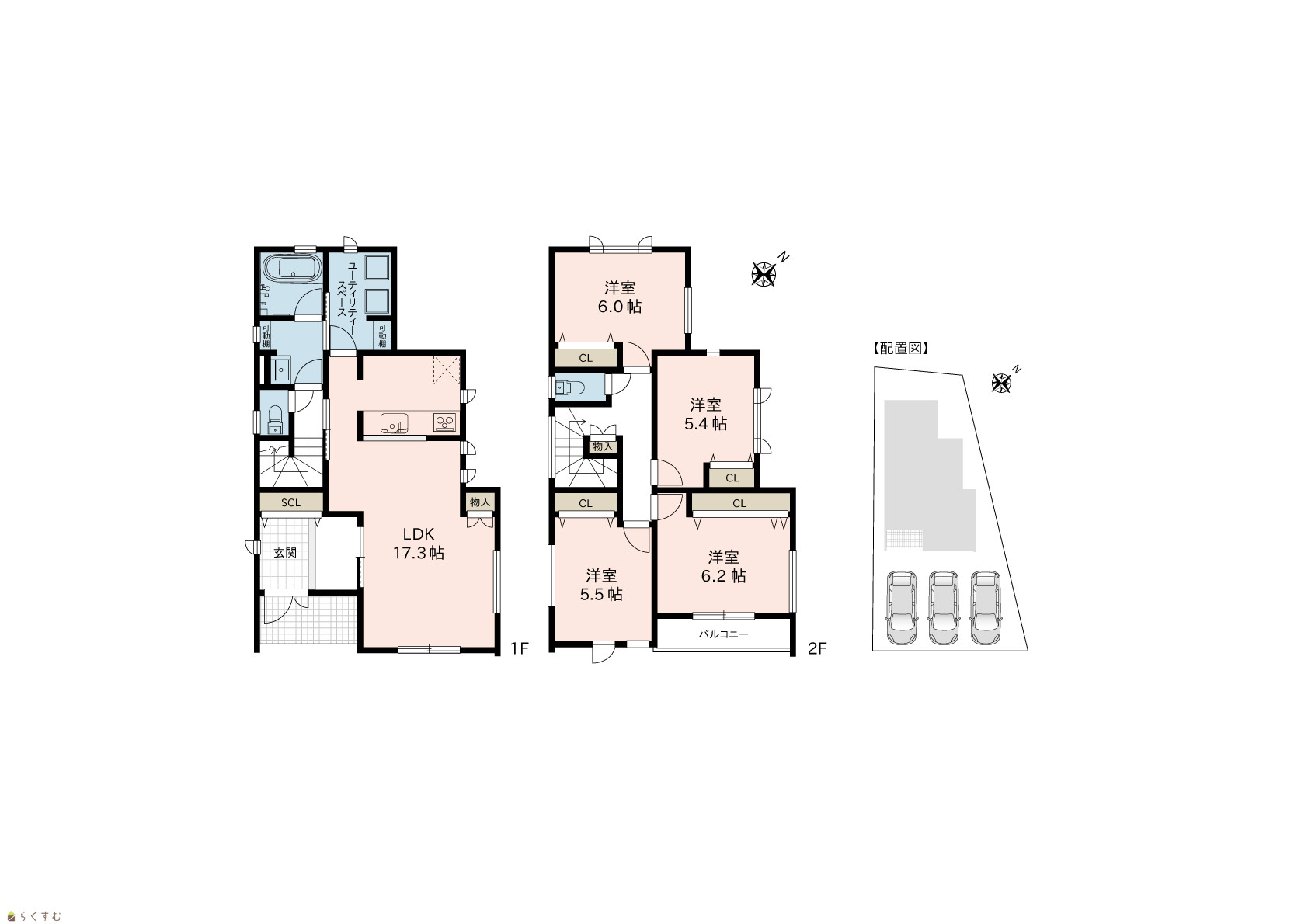 4LDK (洋室:6.2、6.0、5.5、5.4) LDK17.3 |
