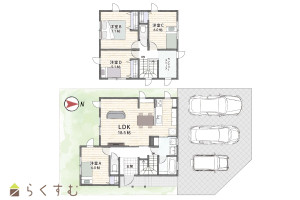 敷地は広めな74.7坪! 駐車スペース4台(3台分のカーポート設置済み)