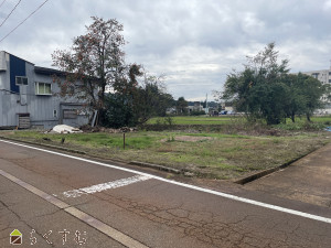 南側の前面道路は消雪道路です。駐車場用地としていかがでしょうか。