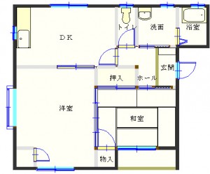 2DK (和室:6畳) (洋室:8)、DK6