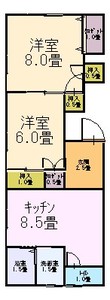 2LDK (洋室:8、6)、B・T別室/水洗トイレ/洗濯機置場/ユニットバス/給湯/シャワー/エアコン