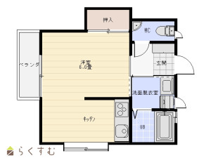 1DK (洋室:6)、キッチン+ダイニング:4帖/バストイレ別/洗面脱衣室あり