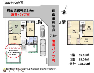 三条市道幅員7.8m 位置指定道路幅員5.9m 消雪パイプ有