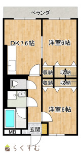 2DK (洋室:6、6)、DK7.6