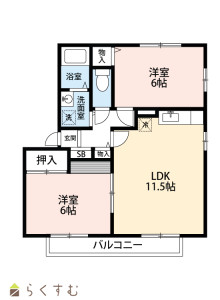 2LDK (洋室:6、6)、LDK11.5