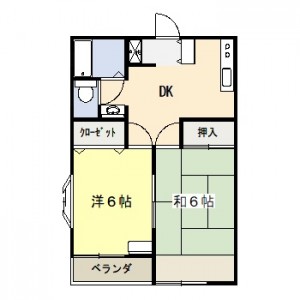 2DK (和室:6畳) (洋室:6)、DK
