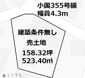 建築条件無し! 158.32坪! 前面道路4m以上!