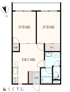 2DK (洋室:6、6)、DK7.8
