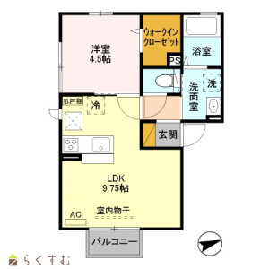1LDK (洋室:4.5)、LDK9.75