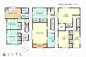 7DK (和室:6畳、4.5畳、6畳) (洋室:12、10.6、7、4.6)、DK6.75