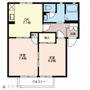 2DK (洋室:7.4、6.2)
