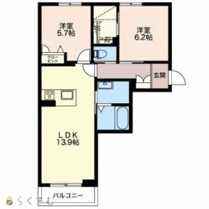 2LDK (洋室:6.2、5.7)