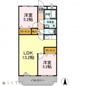 2LDK (洋室:5.2、5.2)