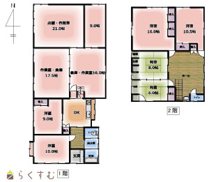 • 間取り 10DK (和室:8畳、6畳) (洋室:21、17.5、16、10、9、9、16、10.5)