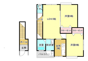2LDK (洋室:6、6)、LDK12