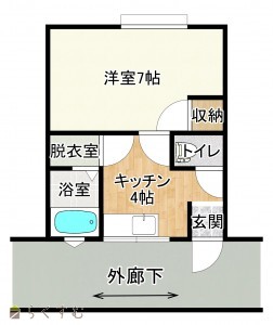1DK (洋室:7)、【二重サッシで断熱+防音+防犯効果UP♪】フローリング洋間 7畳 & ダイニングキッチン