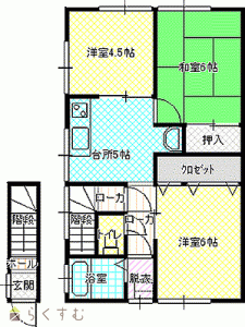 3DK (和室:6畳) (洋室:6、4.5)