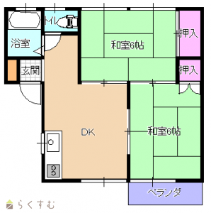 2DK (和室:6畳、6畳)