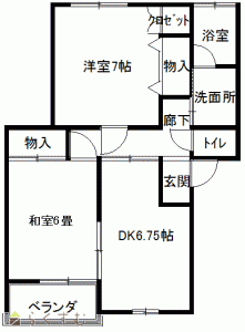 2DK (和室:6畳) (洋室:7)、DK6