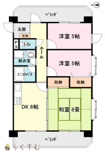3DK (和室:8畳) (洋室:5、5)、DK6