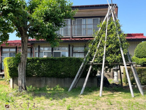 全面道路は除雪道です!除雪機も必要な方はご相談ください!玄関のある北側は車庫に1台分と外にも車が止められます。南側には庭があり、東は田、西は川があり、正面以外は他の建物から離れているので、奥まっていますが窮屈に感じません。