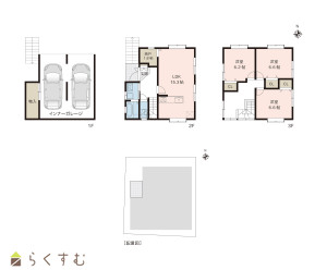3LDK (洋室:6.6、6.6、6.2)、LDK15.3