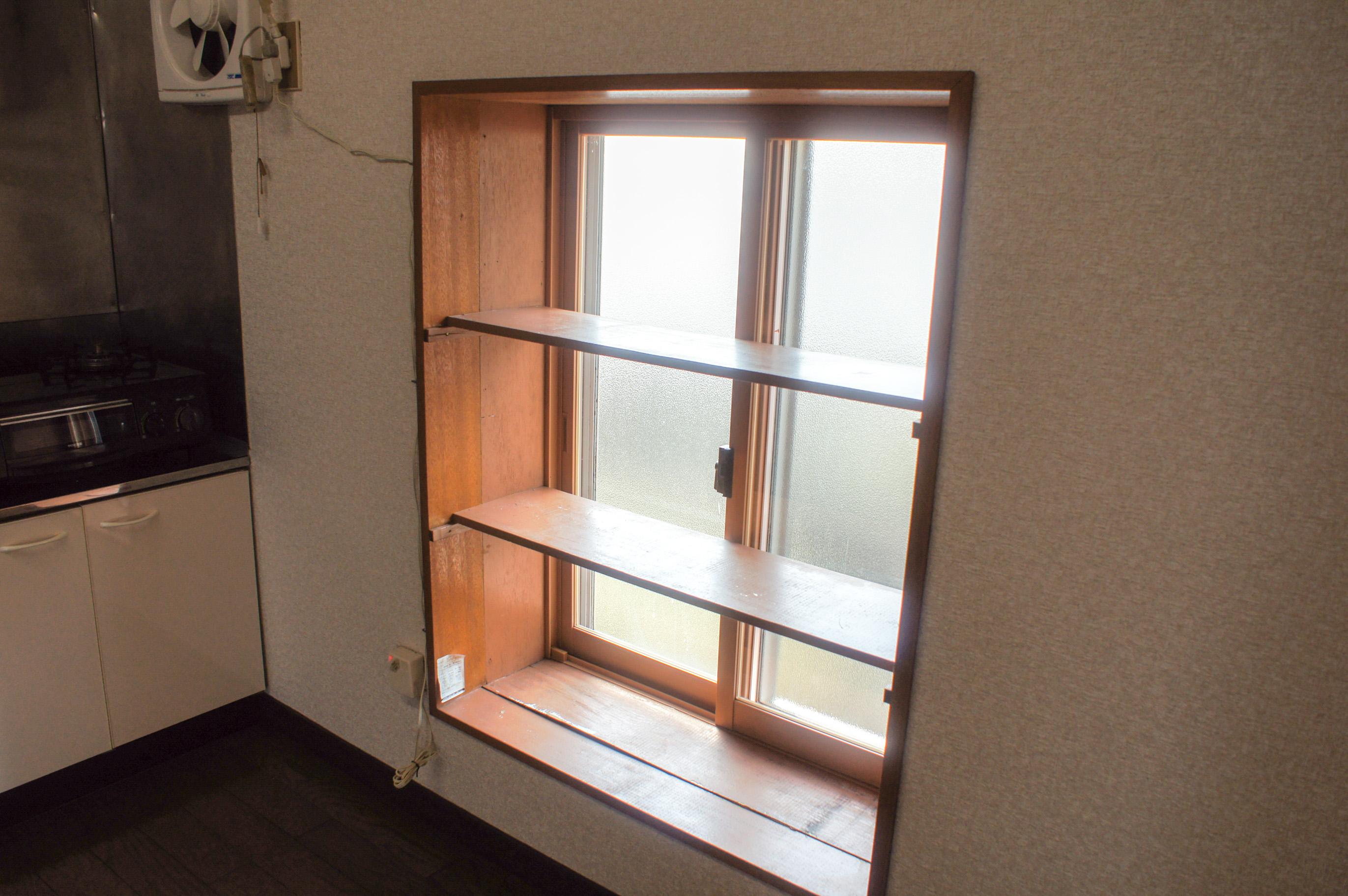 台所の棚付き窓