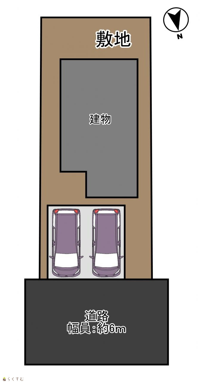 前面道路は北東側6m市道、お車の出し入れもラクラク♪