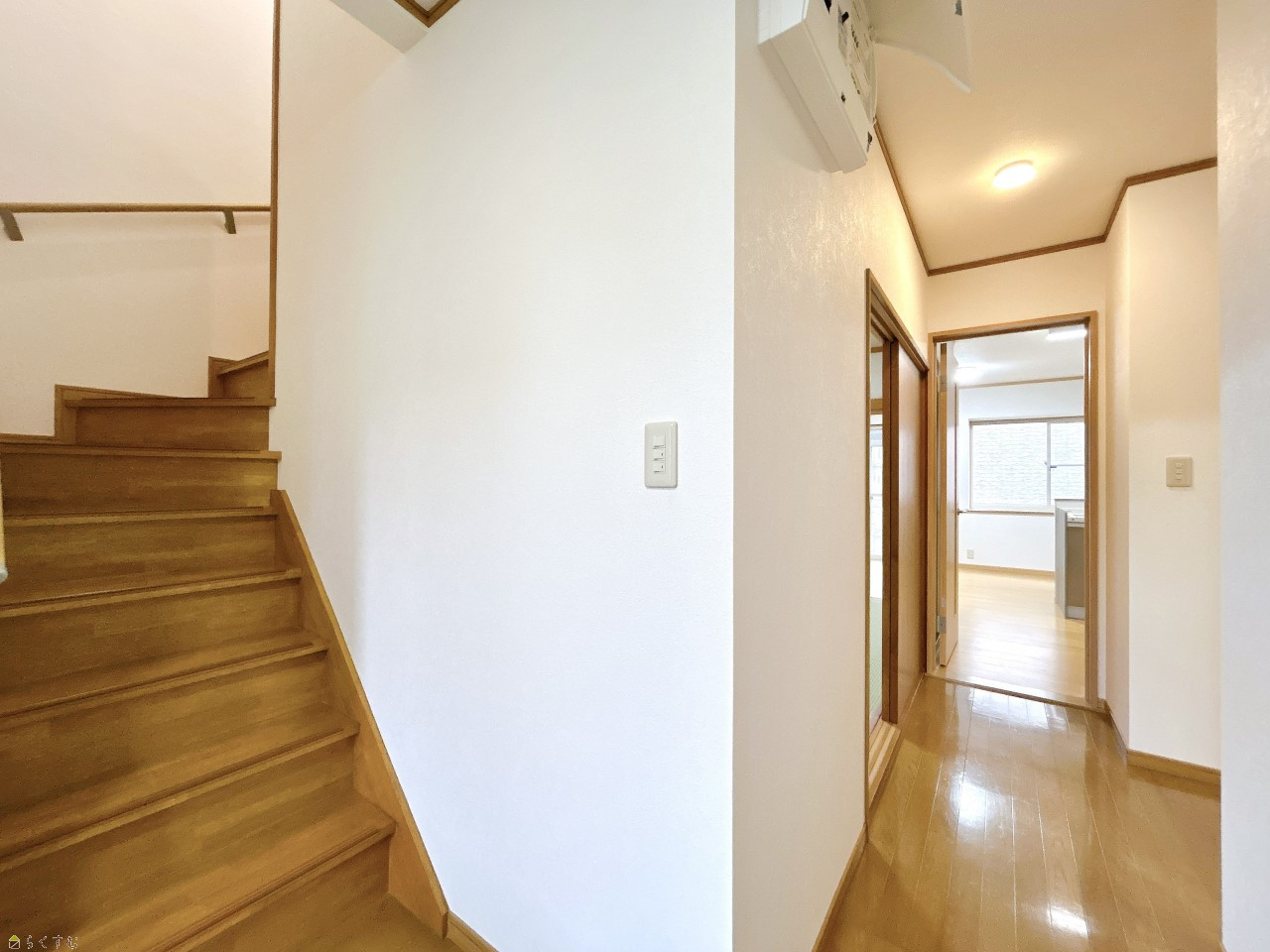 1階廊下は床のクリーニング・クロス張替え・照明交換を行いまし